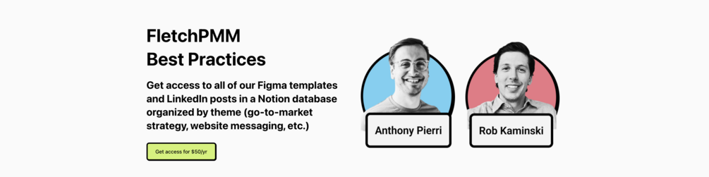 Get access to all of our Figma templates and LinkedIn posts in a Notion database organized by theme (go-to-market strategy, website messaging, etc.)